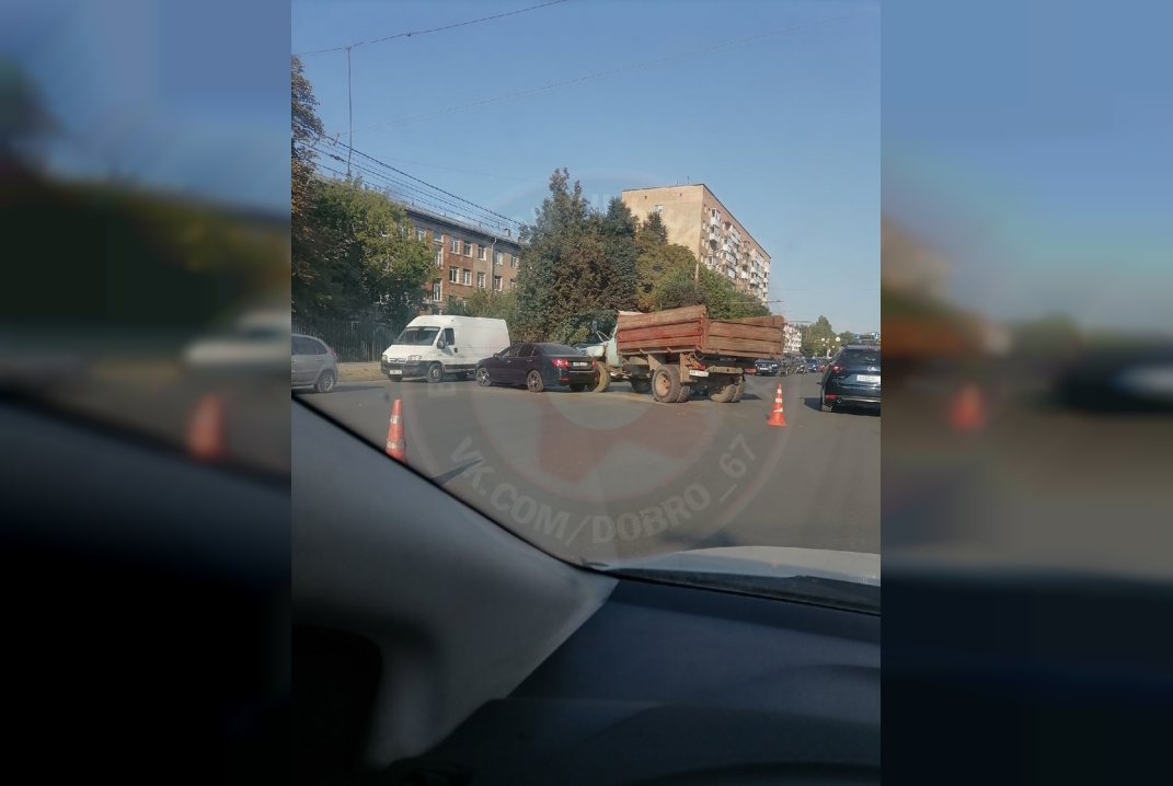 В пятницу, 26 августа, в Смоленске на улице Кирова произошло ДТП: грузовой автомобиль задел легковушку. Происшествие случилось возле дома №47. Участники аварии заблокировали дорогу. О происшествии рассказали очевидцы в соцсетях.