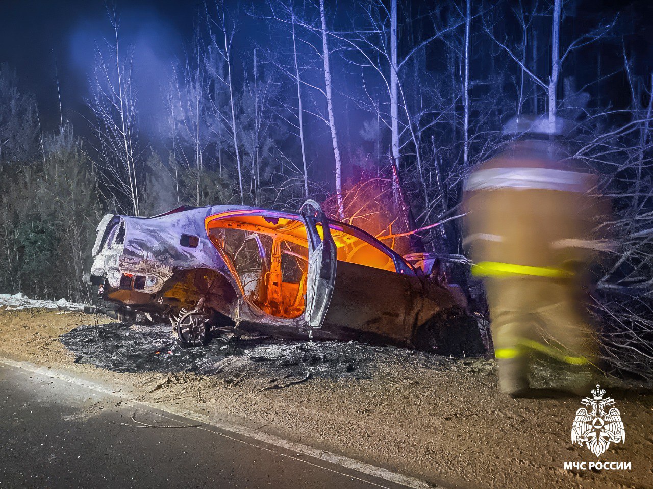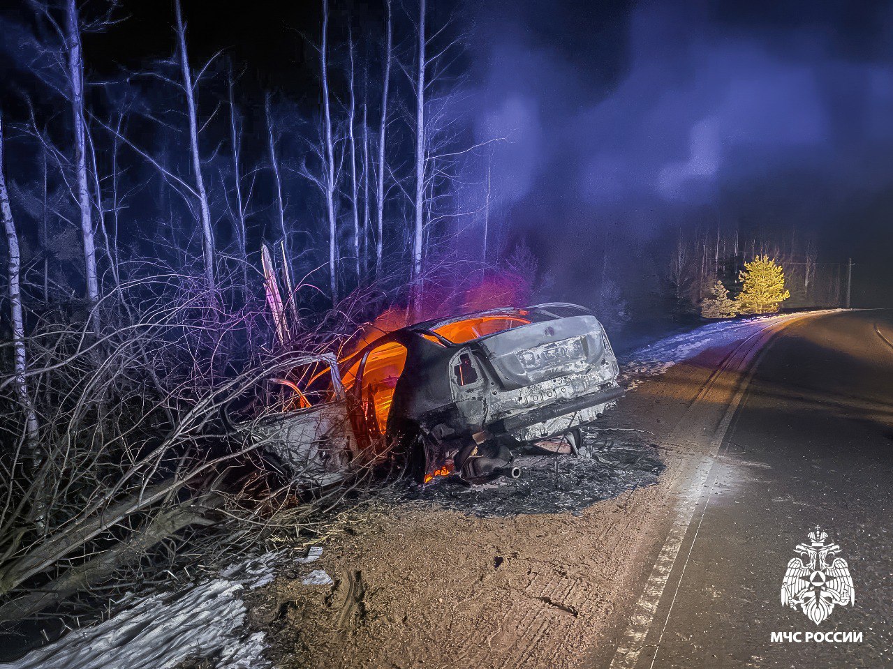 Прибывшие на место пожарные обнаружили, что с дороги Демидов – Пржевальское в кювет съехал легковой автомобиль Skoda Oktavia. После этого машина загорелась. Трех человек, находящихся внутри, — 36-летнего водителя и двух пассажиров 16 и 17 лет — пришлось госпитализировать.