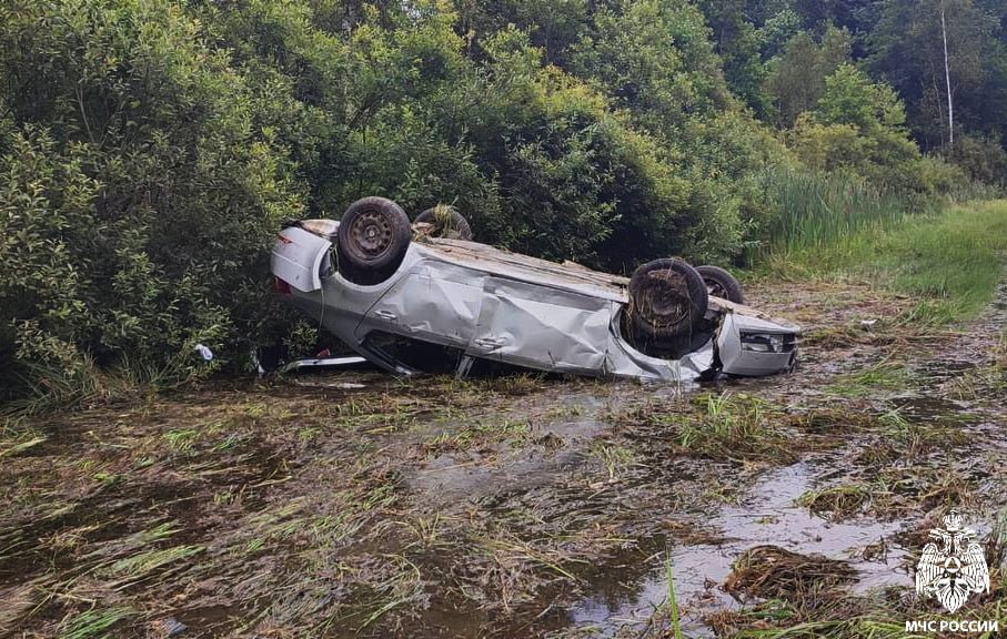 «В Кардымовском округе в районе деревни Березкино столкнулись два легковых автомобиля с последующим опрокидыванием одного из них. Пожарные МЧС России стабилизировали транспортное средство и смыли горюче-смазочные материалы с дорожного полотна«, — добавили официальные представители МЧС.
