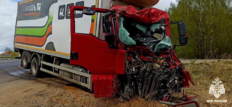 В пятницу, 25 апреля, на окружной дороге города Духовщина произошло серьезное ДТП с двумя грузовиками. По сообщениям регионального ГУ МЧС в 12.20 столкнулись лесовоз и грузик SITRAK.