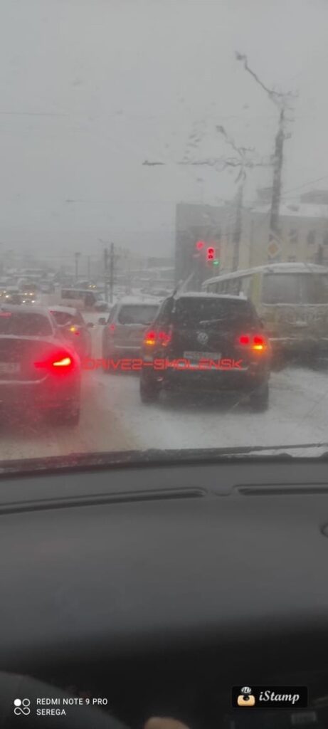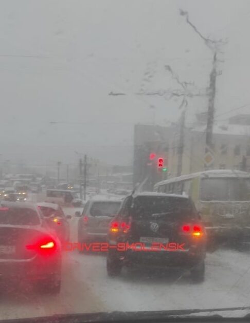 В Смоленске из-за снегопада произошел ряд ДТП. Город становится в одну огромную пробку. О многочисленных происшествиях на дорогах рассказывают горожане в социальных сетях.