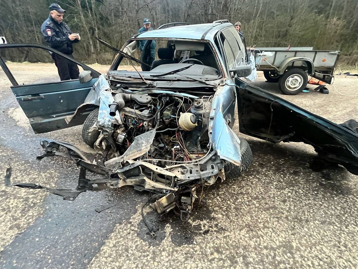 Как удалось выяснить, за рулем легкового авто находился 23-летний мужчина. Он выехал на встречную полосу и врезался в Mercedes, которым управлял 22-летний водитель. В результате столкновения капот универсала превратился практически в ничто. Микроавтобус вылетел в кювет и опрокинулся.