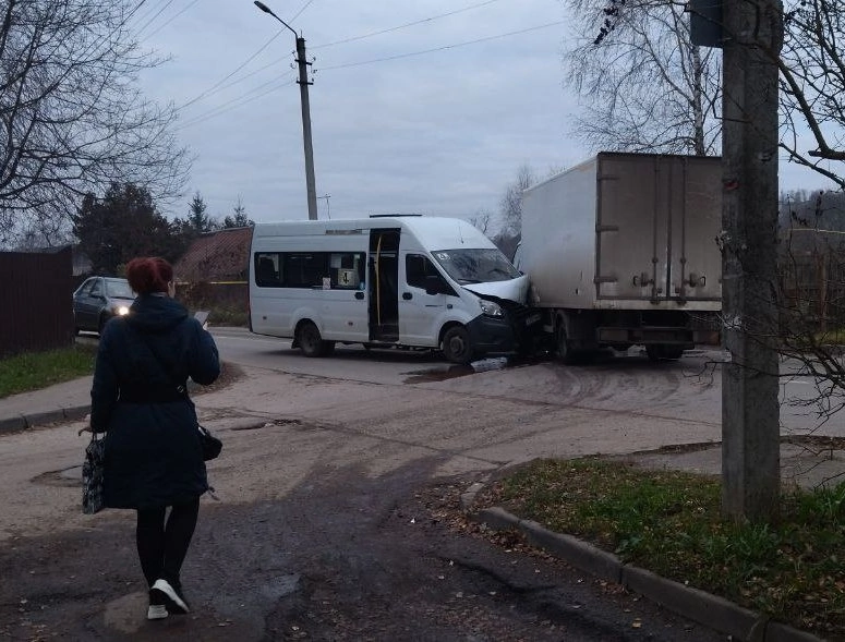 На фотографиях очевидцев видно, что участники ДТП полностью заблокировали проезжую часть. Вероятно, водитель маршрутки №4н не успел затормозить и врезался в грузовой автомобиль. Микроавтобус сильно поврежден. По словам горожан, пострадавших в аварии нет.
