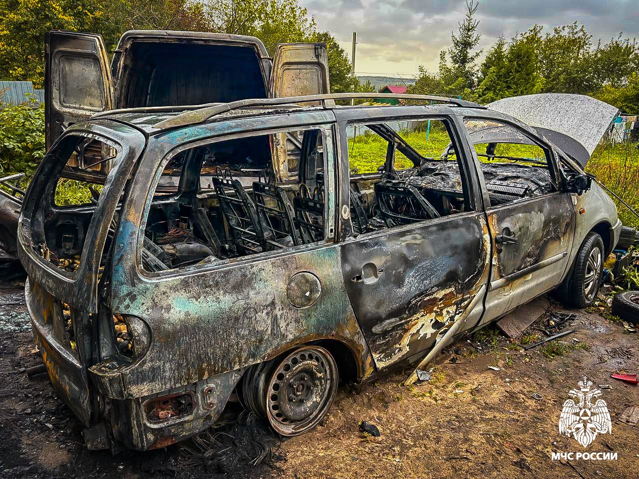 На место ЧП прибыли семь пожарных на двух единицах техники. Спасатели ликвидировали возгорание. К счастью, происшествие обошлось без жертв, а вот транспортные средства полностью уничтожены.
