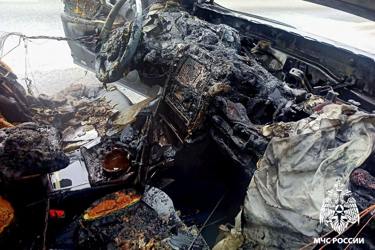 Подоспевшие специалисты МЧС ликвидировали возгорание. В автомобиле выгорел моторный отсек, салон практически уничтожен огнем. Эксперты предполагают, что пожар начался из-за неисправности в машине.