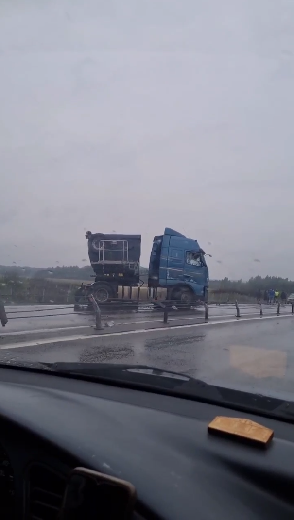 Кроме того, серьезно повреждено тросовое ограждение. Несколько десятков метров «заборчика» согнуты. Дорога практически перекрыта, объехать пострадавшие машины практически невозможно.
