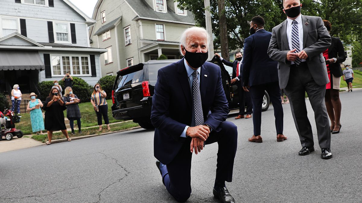 Байден встал на колени перед рабочими во время общих съемок, ранее он уже становился на колени для съемок с баскетболистами. Сразу после мероприятия он не смог найти быстро выход, пока ему не помог один из участников.
