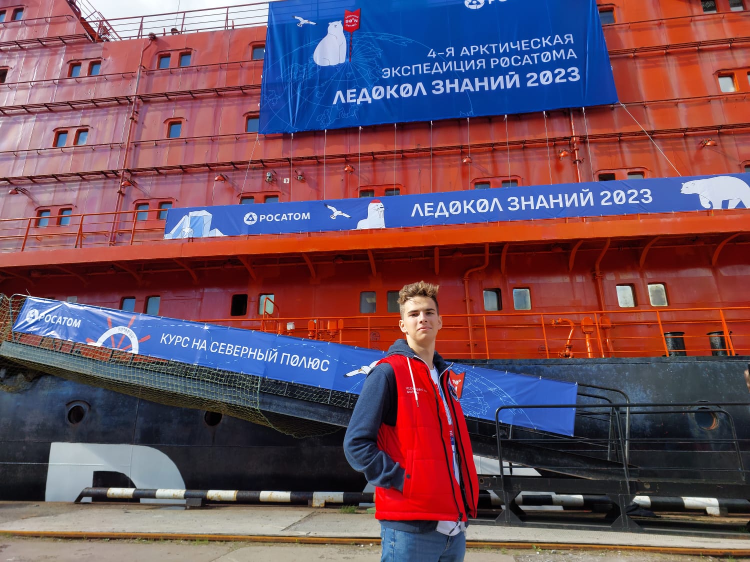 А вот второй участник экспедиции Максим попал на «Ледокол Знаний» через конкурс, где сначала принял участие в викторине, а затем снял тематический ролик.