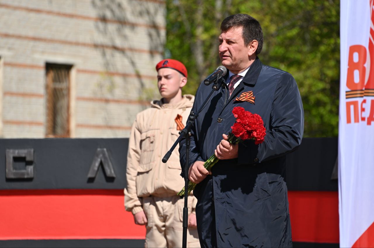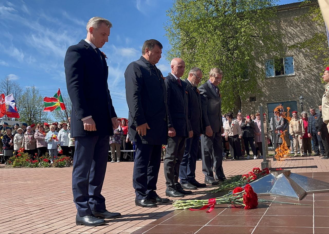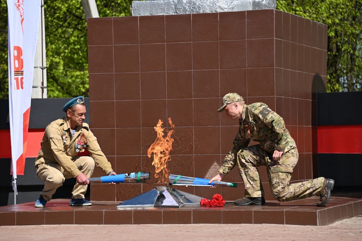 Почетное право зажечь Вечный огонь предоставили ветерану Афганской войны Петру Ковалькову, участнику СВО Михаилу Сенькину и учащимся Шумячской средней школы Полине Степановой и Никите Щукину.