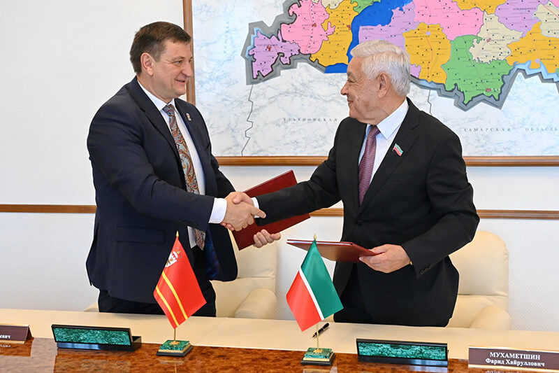 В субботу, 21 июня, в Татарстане состоялась рабочая встреча с участием делегации Смоленской области. В ходе мероприятия председатель Смоленской областной Думы, секретарь регионального отделения «Единой России» Игорь Ляхов и глава Государственного Совета Республики Татарстан Фарид Мухаметшин подписали соглашение о сотрудничестве между законодательными органами двух регионов.
