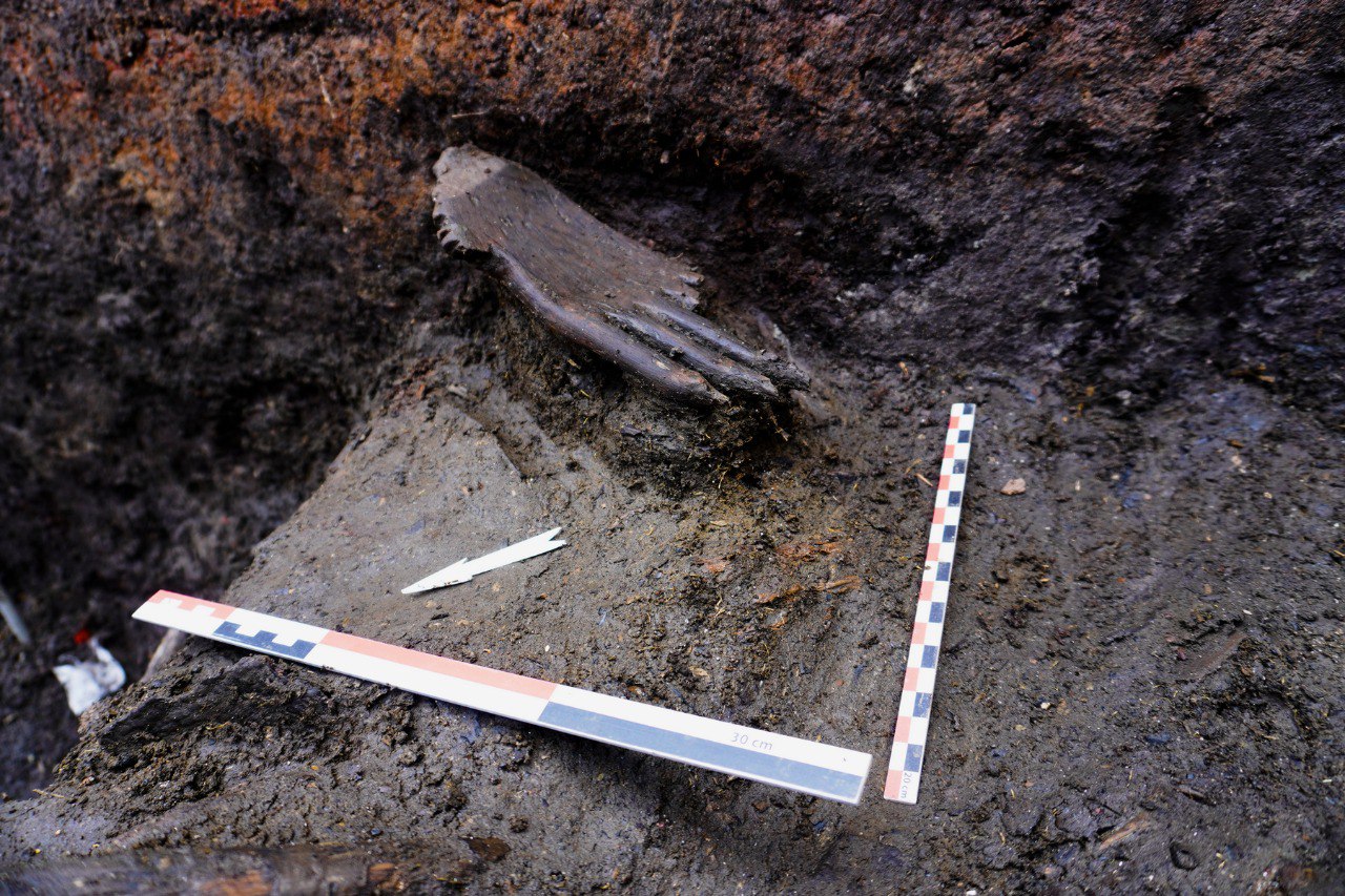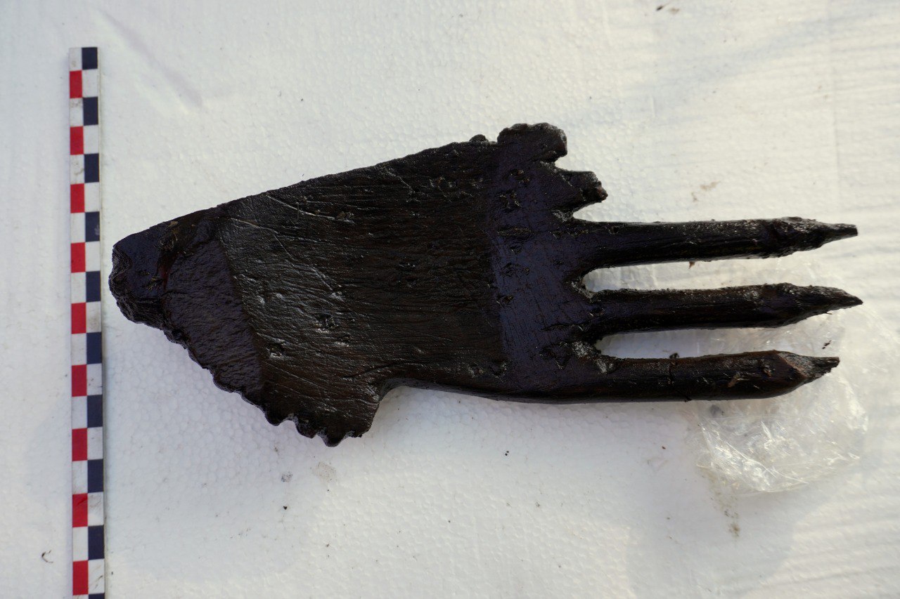 В течение этого полевого сезона Северо-Западная экспедиция Эрмитажа исследует торфяниковые поселения в Сертейской долине на территории Смоленской области. Там в слое 5-4 тысячелетия до нашей эры специалисты обнаружили антропоморфную кисть руки, сделанную из дерева.