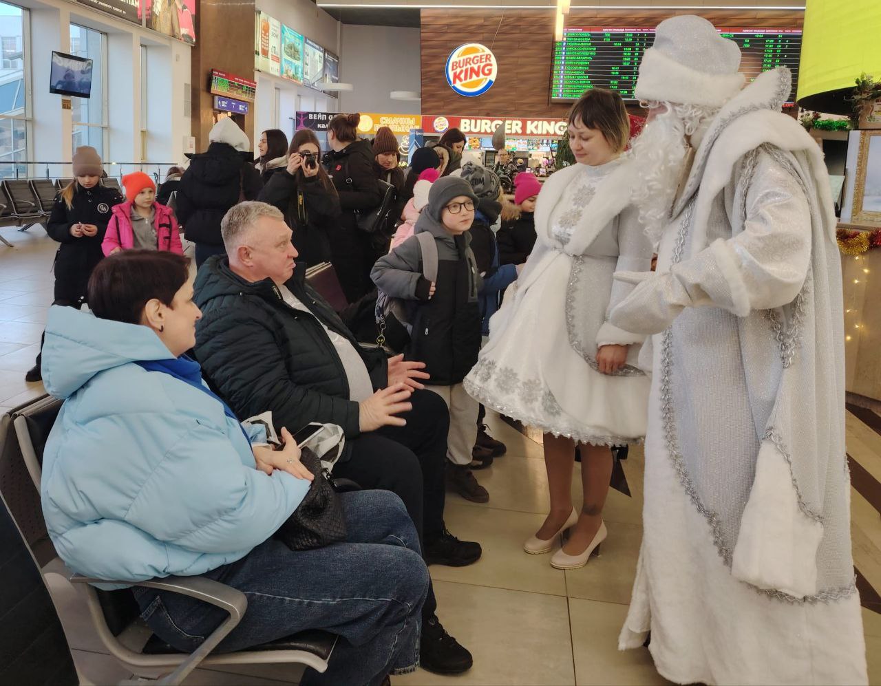 Новогодняя атмосфера, царившая в минском вокзале, помогла посетителям скрасить ожидание и узнать интересные факты о Смоленской области. Чтобы получить гарантированный приз, пассажирам нужно было ответить на вопросы об истории Смоленщины от Деда Мороза и Снегурочки,. Посетители вокзала с энтузиазмом приняли участие в акции.