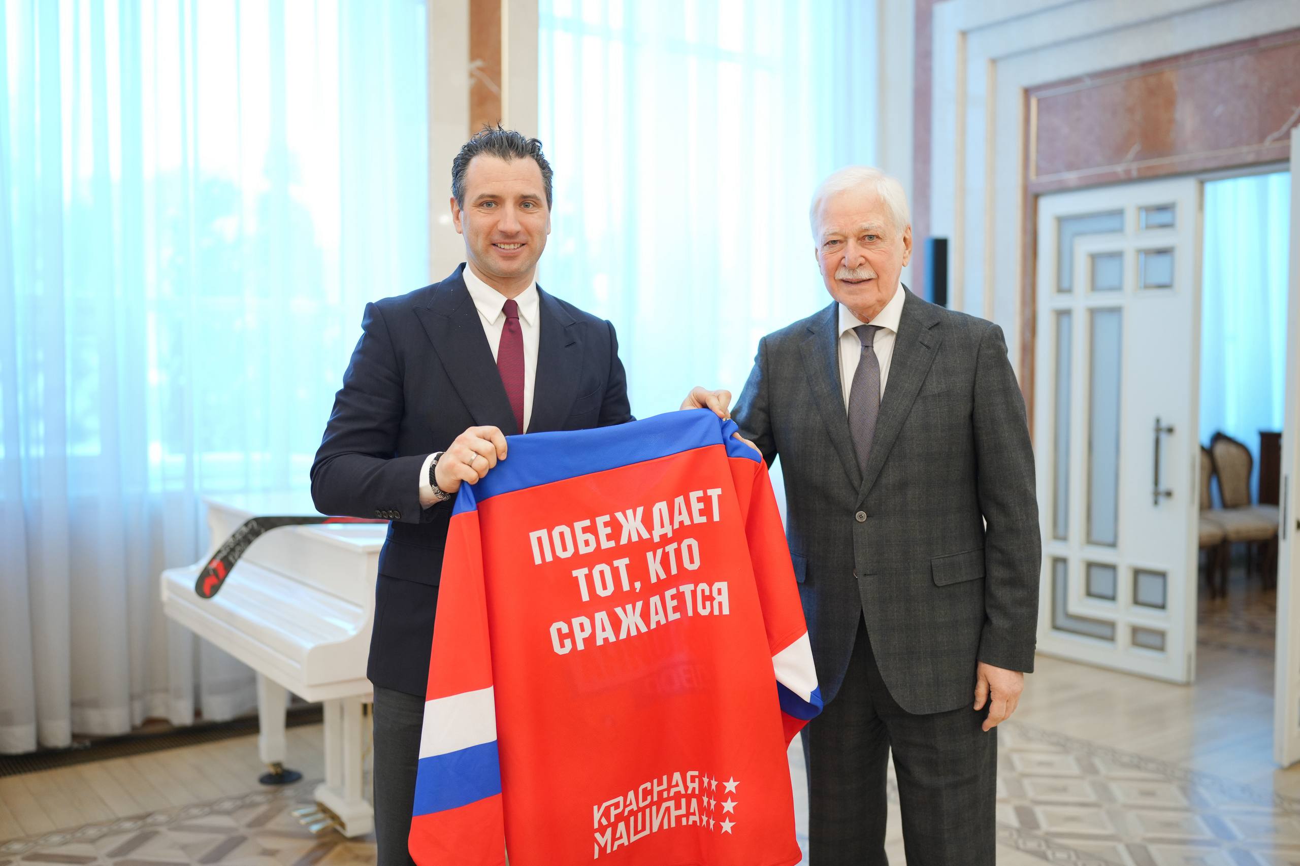 Чрезвычайный и полномочный Посол России в Беларуси Борис Грызлов и первый вице-президент Федерации хоккея России Роман Ротенберг обсудили вопрос внедрения российской программы «Красная Машина» в белорусскую систему подготовки молодых хоккеистов.