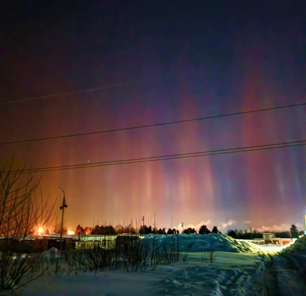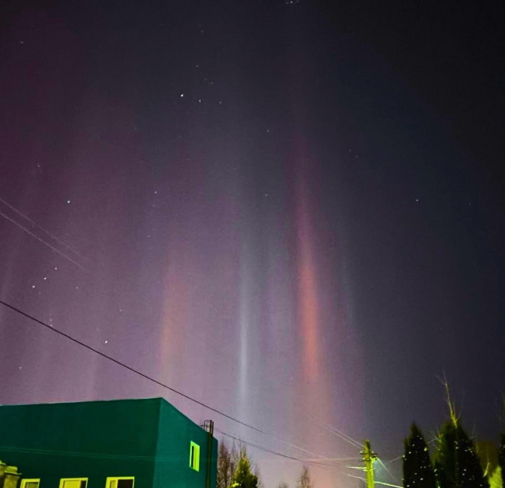 В Смоленской, Ленинградской, Московской, Нижегородской и Тверской областях в ночь с 10 на 11 февраля сияло необычное и редкое природное явление — световые столбы. Образуются они благодаря морозу. Фотографиями местные жители поделились в социальных сетях.