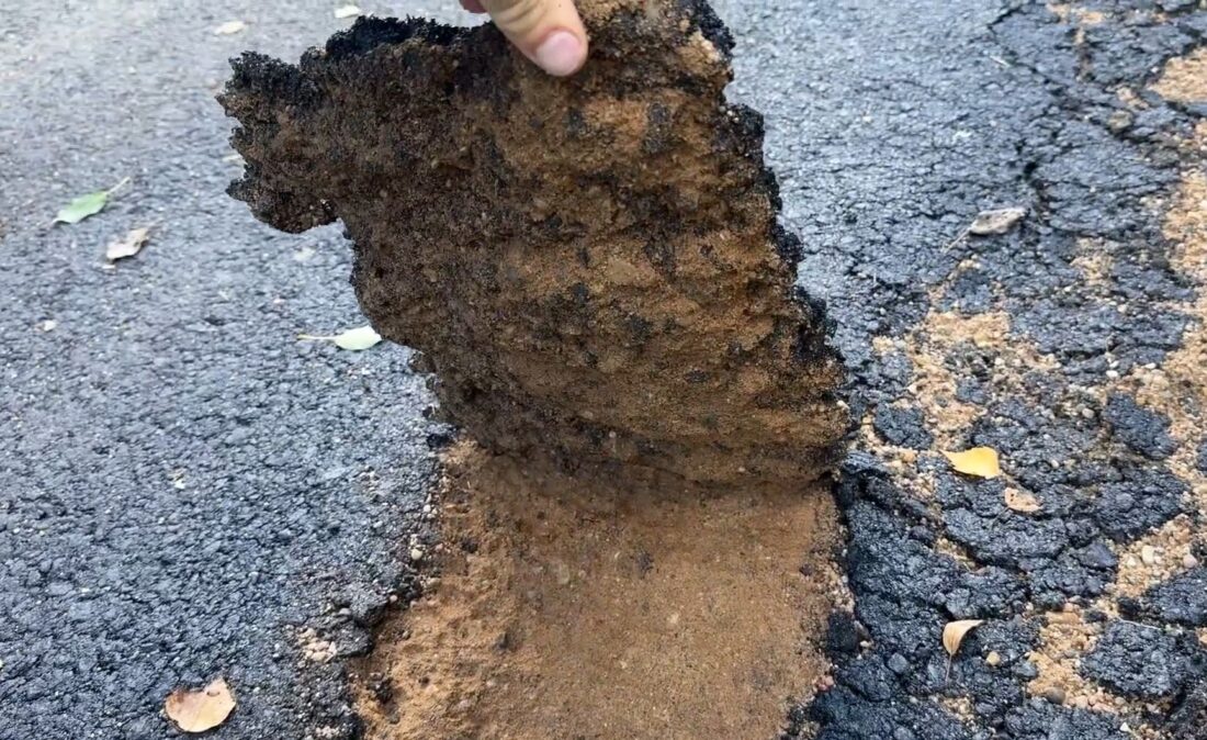 «Мы видим асфальт толщиной полтора-два сантиметра, а где-то и сантиметра нет. Асфальт укладывали на чистый песок, ЩПГС тут даже не видно. По краям покрытия каток даже не ходил – видимо, боялся его продавить. Асфальт можно разбирать голыми руками. На примыканиях видна разность ширин нового и ранее уложенного асфальта. На отдельных участках уже происходит сдвиг асфальтобетонного покрытия, оно укладывалось в один слой. Если дорогу приняли в эксплуатацию – виновные должны понести ответственность. Соответствующий запрос направлен в прокуратуру Смоленской области», — отметили в ОНФ.