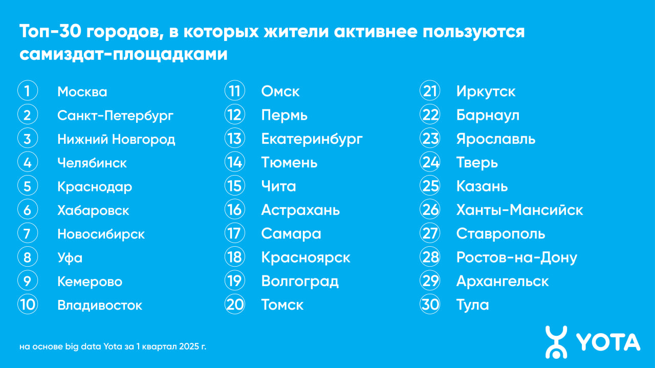 Больше всего самиздат-сервисами пользуются жители Москвы, Санкт-Петербурга и Нижнего Новгорода. В топ-10 по среднему трафику на пользователя также вошли Челябинск, Краснодар, Хабаровск, Новосибирск, Уфа, Кемерово и Владивосток. Традиционные онлайн-библиотеки наиболее популярны в Москве, Санкт-Петербурге, Уфе, Казани, Новосибирске, Краснодаре, Самаре, Екатеринбурге, Кемерово и Челябинске.