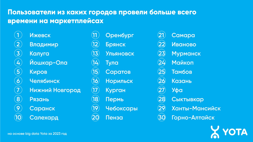 Россияне все больше пользуются маркетплейсами — трафик таких ресурсов вырос на 72% за прошлый год, при этом вовлеченность мужчин стала выше на 90%. Общероссийский тренд подтверждается и среди мужчин Смоленска — их вовлеченность выросла на 83%. Также на 33% увеличилось и среднее время, которое российские пользователи проводили за онлайн-шоппингом. Наибольший прирост трафика показали зумеры и пользователи 56+ — за 2023 год эти категории потратили в 2 раза больше гигабайт, чем годом ранее. Тренды выявили аналитики Yota на основе обезличенных данных абонентов.
