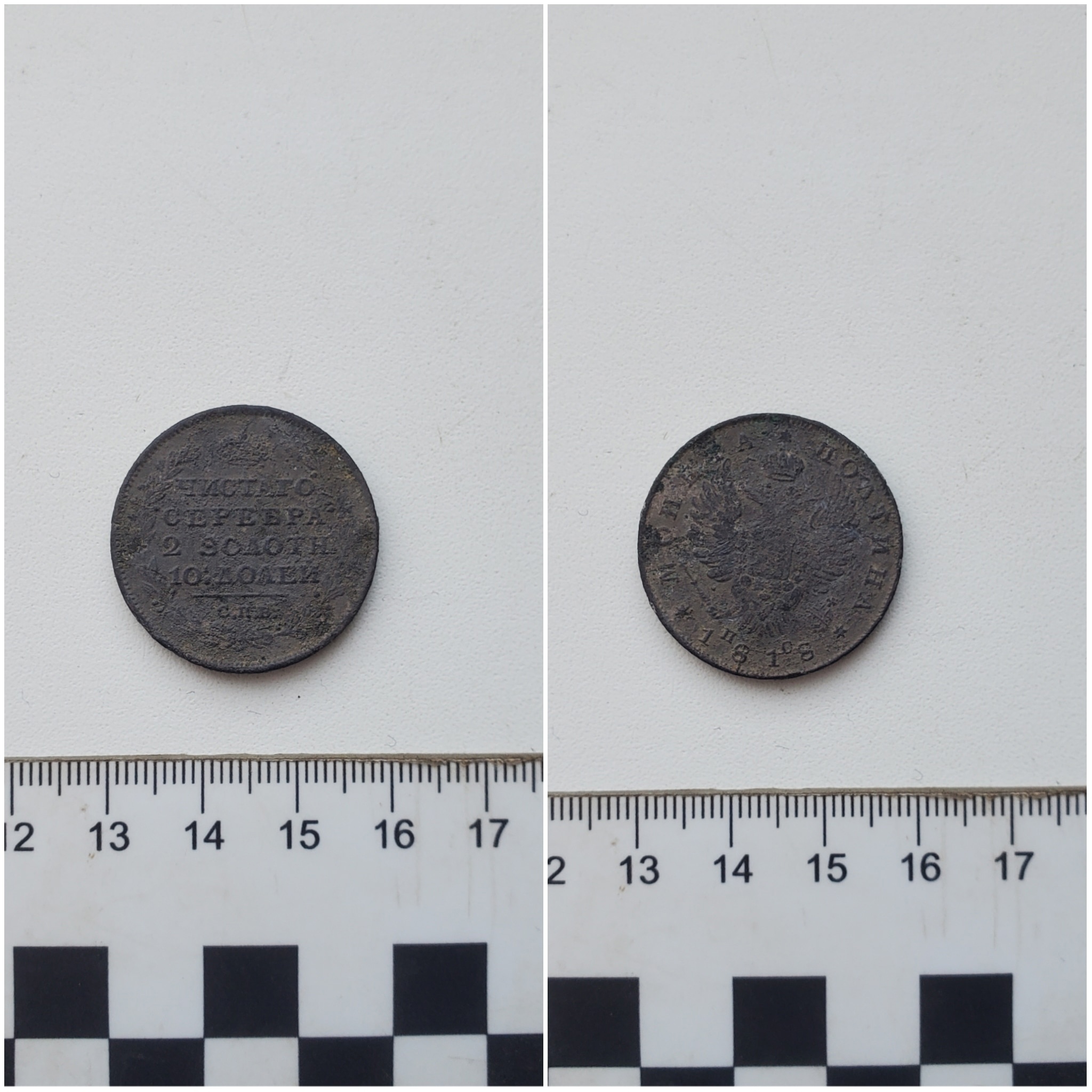 - серебряную монету эпохи правления императора Александра I (1818 года);