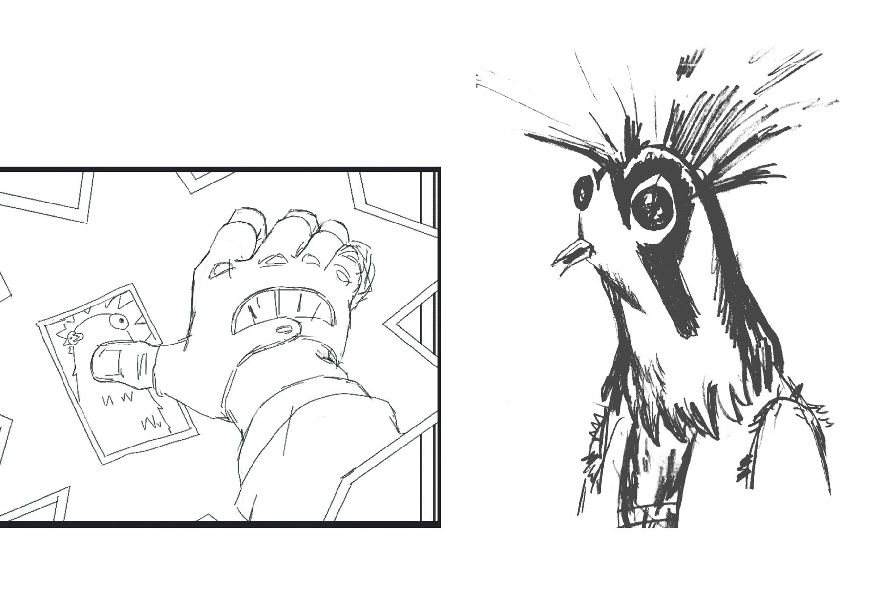 Рассказ построен на движении двух персонажей навстречу друг другу: обычного работяги, который в свободное время занимается стрит-артом, и Птицы-панка. Их встреча — это дружеское взаимодействие, они клеют наклейки друга на друга. Говоря о Птице-панке стоит упомянуть, что ее образ отсылает к городской символике — Гамаюну.