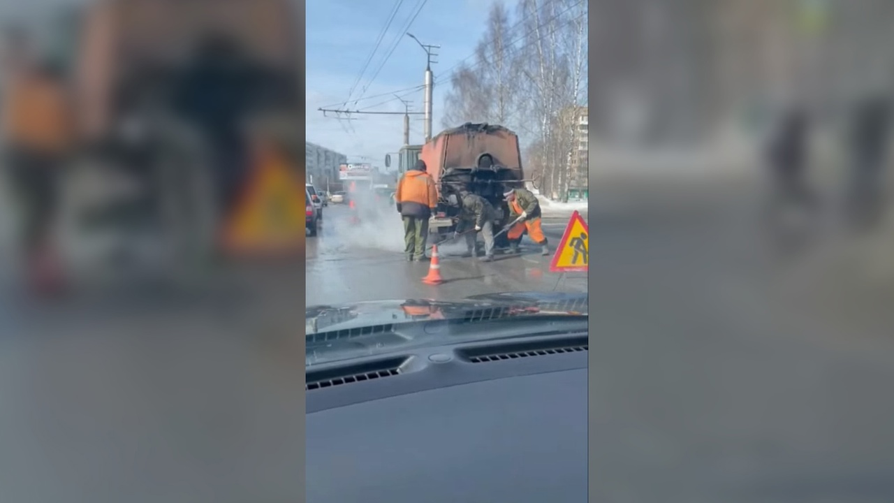 Автомобилисты сняли на видео ремонт улицы в Смоленске в исполнении городских дорожников. По их словам, специалисты не позаботились о воде в ямах и залили раскалённый асфальт в углубления.