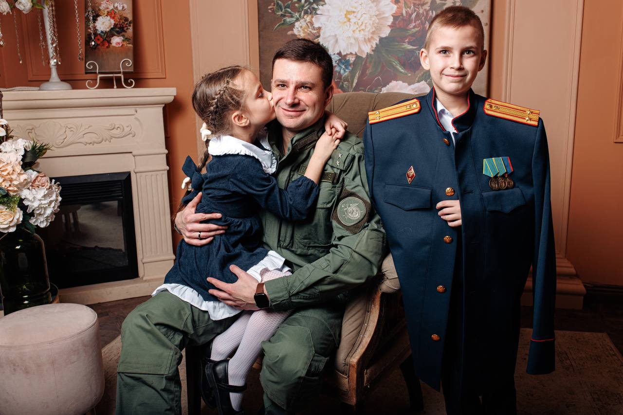 Заместитель руководителя отдела криминалистики подполковник юстиции Марк Ракицкий сфотографировался с сыном и дочкой Давидом и Есенией.