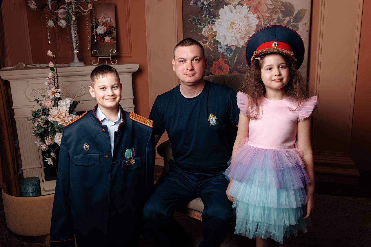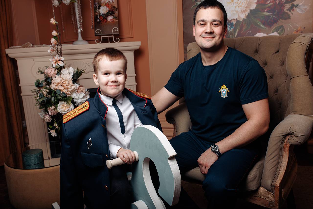 Руководитель первого отдела по расследованию особо важных дел регионального СУ СКР подполковник юстиции Илья Кожанов на фото – с будущим защитником Отечества Владимиром и принцессой Варварой.