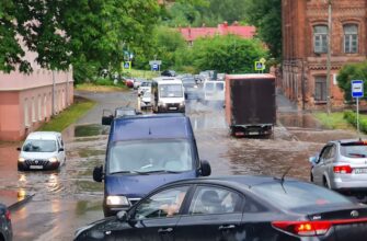 Четыре автомобиля «захлебнулись» в луже на Студенческой улице в Смоленске