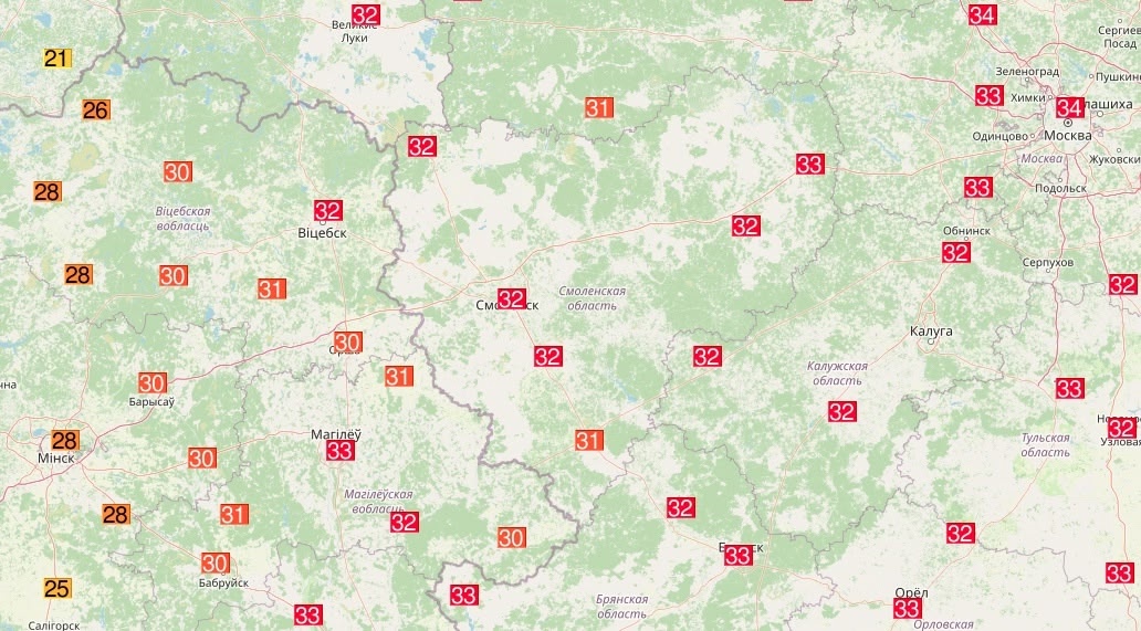 При этом температуры выше «тридцатки» получили и многие окружные центры. По данным «погодного эксперта» Михаила Хайбуллова ситуация сложилась следующим образом: