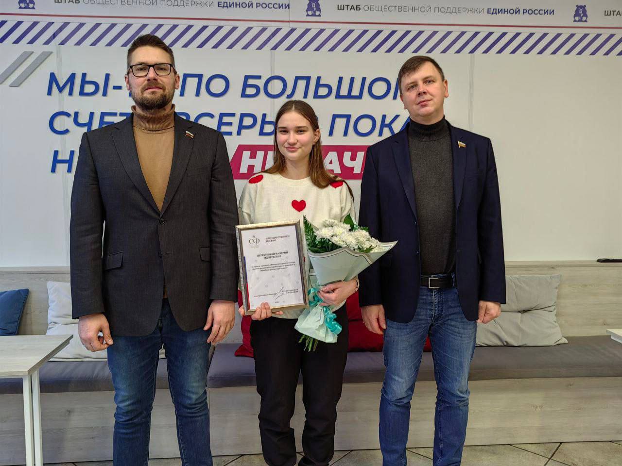 Сенаторы от Смоленской области Руслан Смашнев и Артем Малащенков передали юным смолянам Благодарственные письма Совета Федерации. Летом 2024 года трое подростков спасли тонущую женщину.