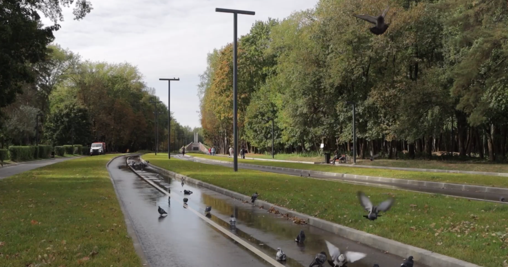 На пешеходных дорожках уложено почти 5,6 тысячи квадратных метров брусчатки. Еще свыше 1,5 тысячи квадратных метров потребовалось для велодорожек. Вдоль них установлены лавочки и урны.