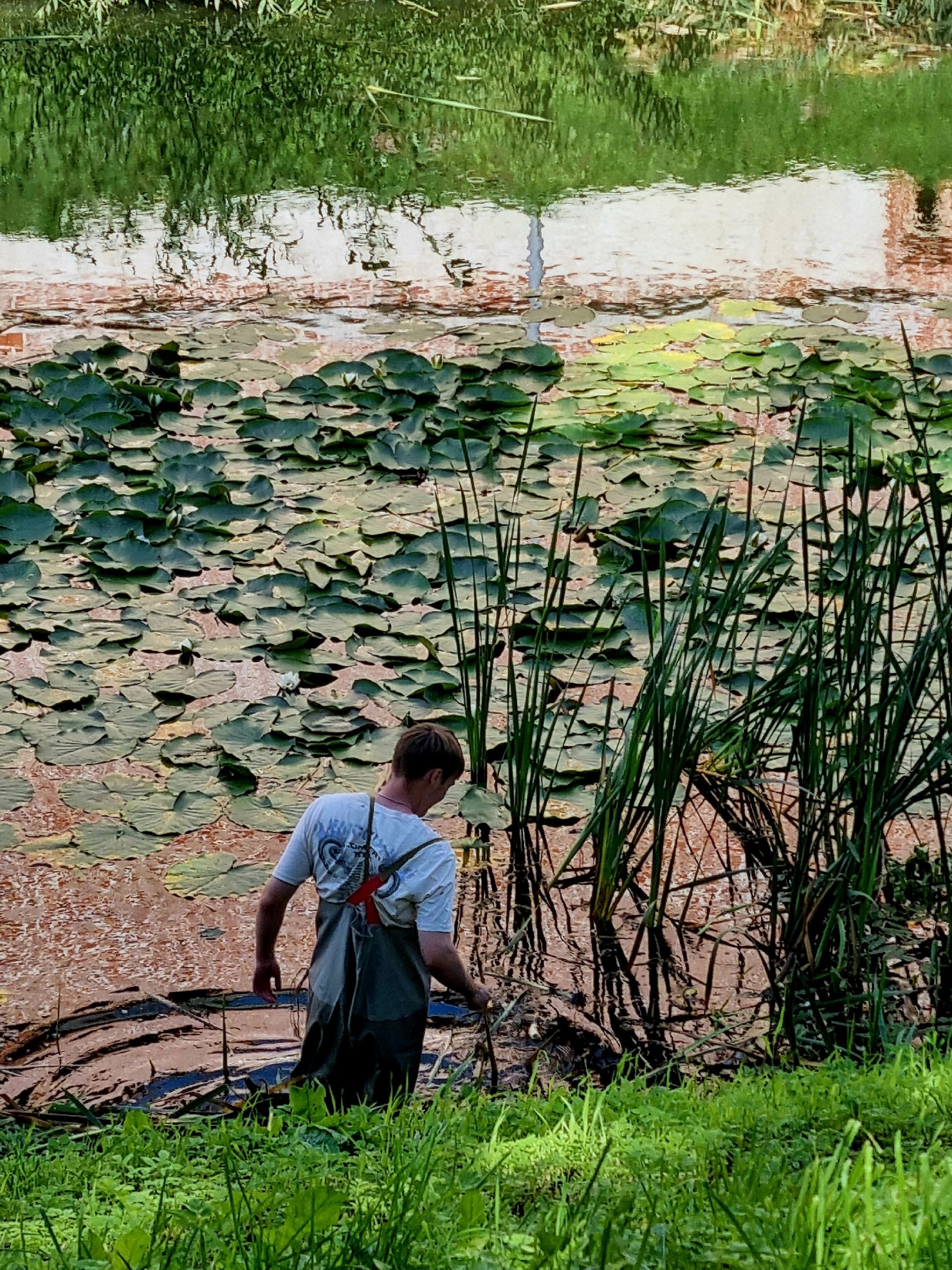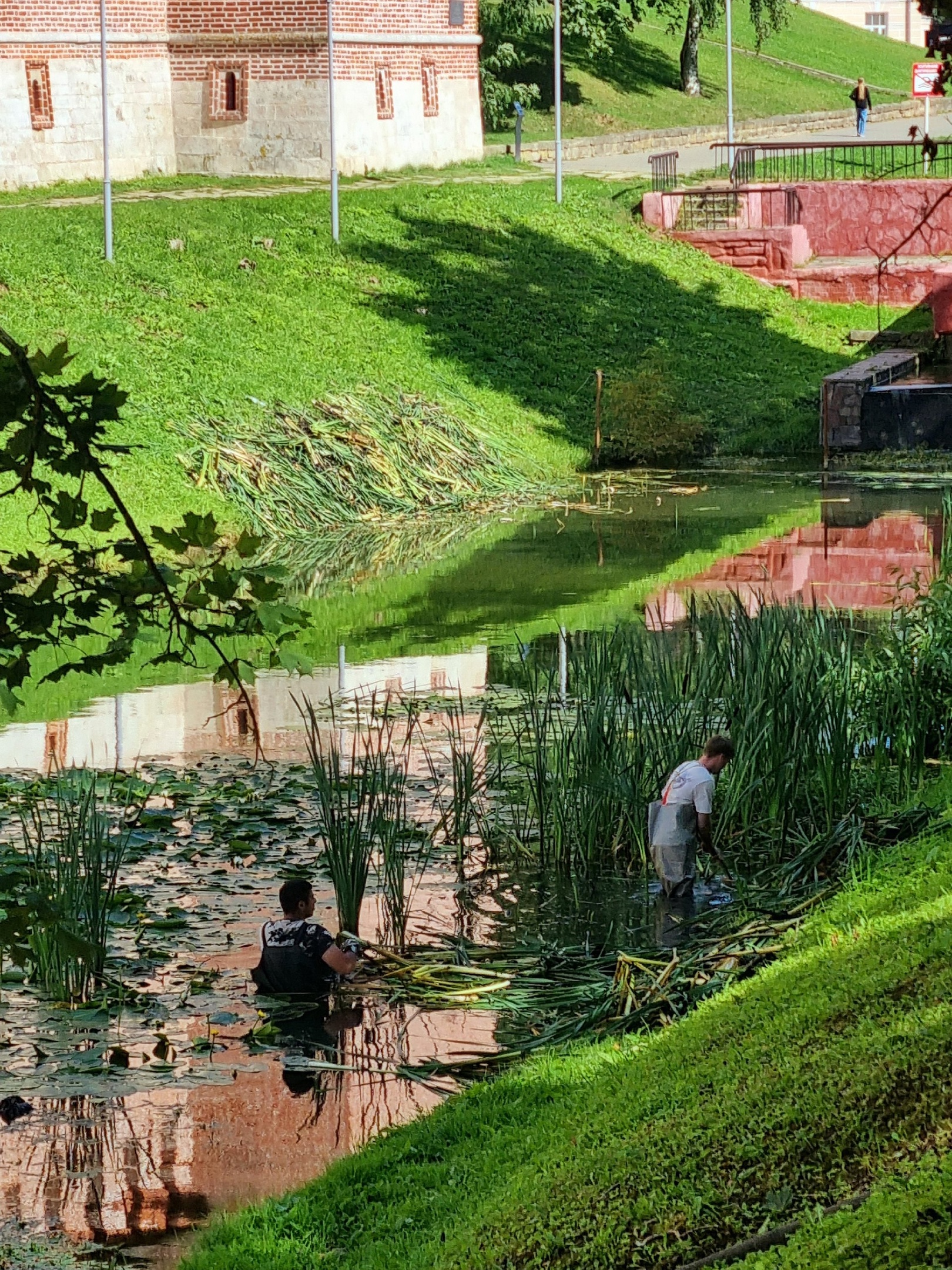 В понедельник, 12 августа, на территории Лопатинского сада начались работы по расчистке берегов пруда с каскадом от рогоза (более известного как камыш) и других трав, густо произрастающих с обеих сторон от водоема. Об этом сообщили официальные представители смоленской Дирекции парков, которые в подтверждение своих слов поделились фотографиями с места.
