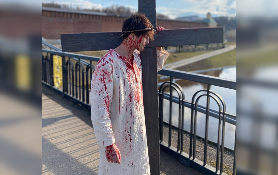 В Смоленске жители осудили парня, который переоделся в Иисуса Христа. Смолянина заметили на Успенском мосту вместе с крестом, видео появилось в сети. Некоторые горожане гневно высказались в сторону актёра. По их мнению, такое поведение недопустимо. Молодой человек был одет в тунику, стилизованную под одеяние раненого. На голове «Сына Божьего» находился колючий венок.