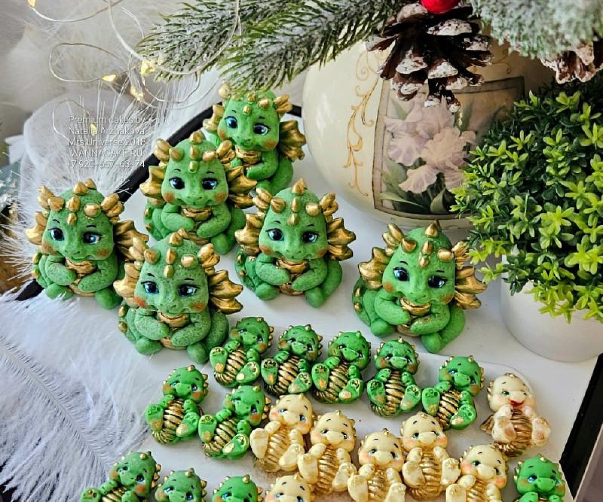 Сюжет Наталия снимала сама: женщина в течение нескольких дней записывала процесс изготовления сладких символов 2024 года в виде шоколадных драконов и зефира в виде реалистичных мандаринов, веток ели, шишек, снежков к Новому году.