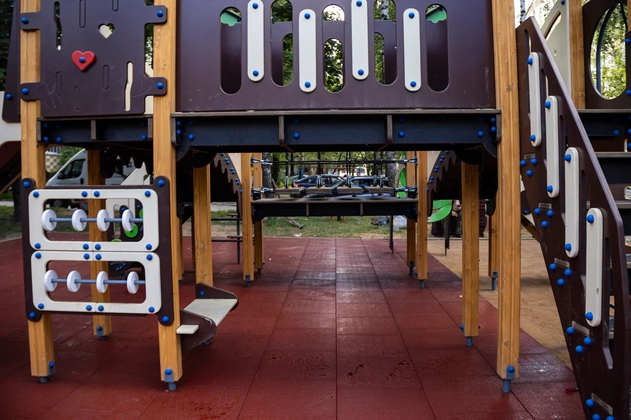 «На площадке в Станционном переулке, 14 осталось завершить укладку резинового покрытия«, — добавили официальные представители городской администрации.