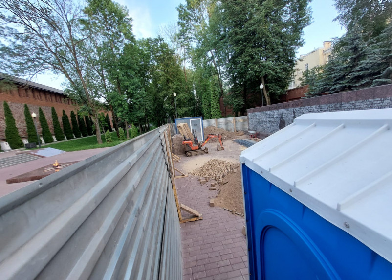 В Сквере памяти героев в Смоленске рабочие установили биотуалет рядом с Вечным огнем. Вероятно, биотуалет привезли для удобства рабочих, которые строят дополнительные секции к панно Бессмертного полка. Жители города отмечают, что синяя кабинка источает сильный смрад, сообщает издание Smolnarod.