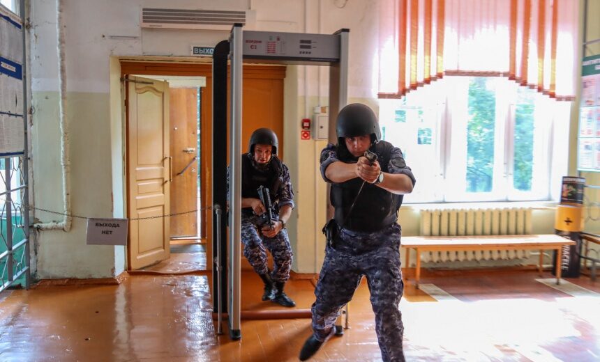 В течение нескольких минут после поступления сигнала, к учебному заведению приезжают две вооруженные команды. Одна из них берет под контроль вход в здание школы. Вторая заходит внутрь помещения и устанавливает причину срабатывания тревоги.