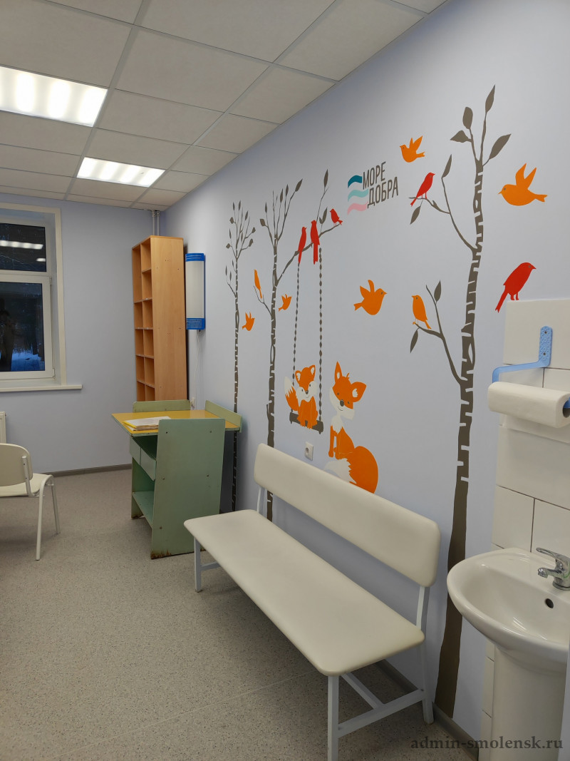 В рамках проведения работ волонтеры-художники смоленского благотворительного проекта «Море добра» добавили свою капельку добра. Активисты добавили акценты на стены, добавив на них занимательные картинки. В свою очередь, два больших билборда смогут занимать маленьких посетителей в процессе ожидания приема.