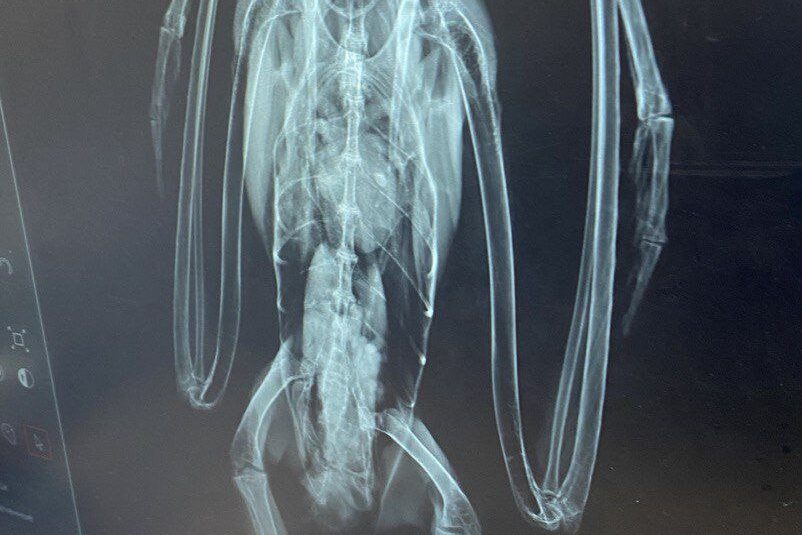 Невооруженным глазом было видно, что у птахи — травмы лапы. После осмотра доктора выяснилось, что это травматическая дисплазия тазобедренного сустава.