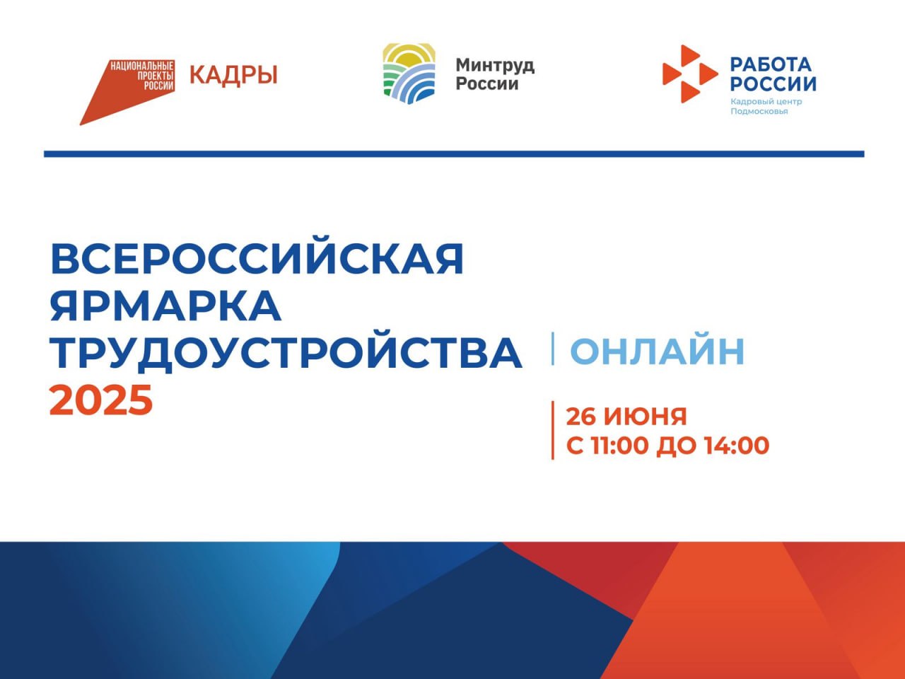 Онлайн-ярмарка с предложениями от предприятий Подмосковья проводится в рамках федерального этапа Всероссийской ярмарки трудоустройства«Работа России. Время возможностей» и состоится 26 июня. Начало – в 11:00. Подключиться к ней можно по ссылке.