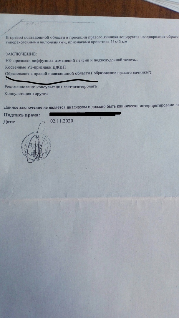 После обследования в Петербурге стало ясно, что в животе девушки обнаружен кальцинат размером в 5,5 сантиметров, то есть скопление солей кальция в органах. Обычно их размер доходит до нескольких миллиметров.