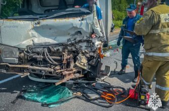 Водитель грузовика оказался зажат в кабине в результате столкновения с другим авто