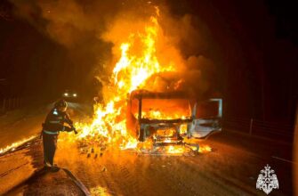 На смоленском участке трассы М-1 на ходу загорелся грузовик Mercedes Atego