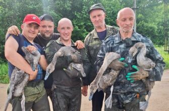 Операция по спасению семьи лебедей из обмелевшего озера прошла успешно