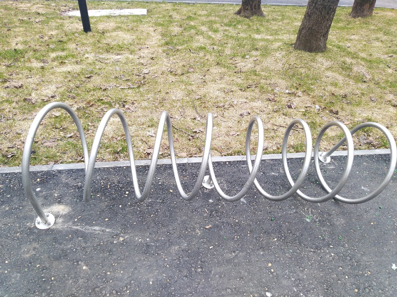 Пострадали не только зайцы. Кроме арт-объектов, ощутила присутствие хулиганов и другая «инфраструктура». Неизвестные погнули и выдрали из земли велосипедную парковку. Рядом лежат поврежденные геометрические фигуры.
